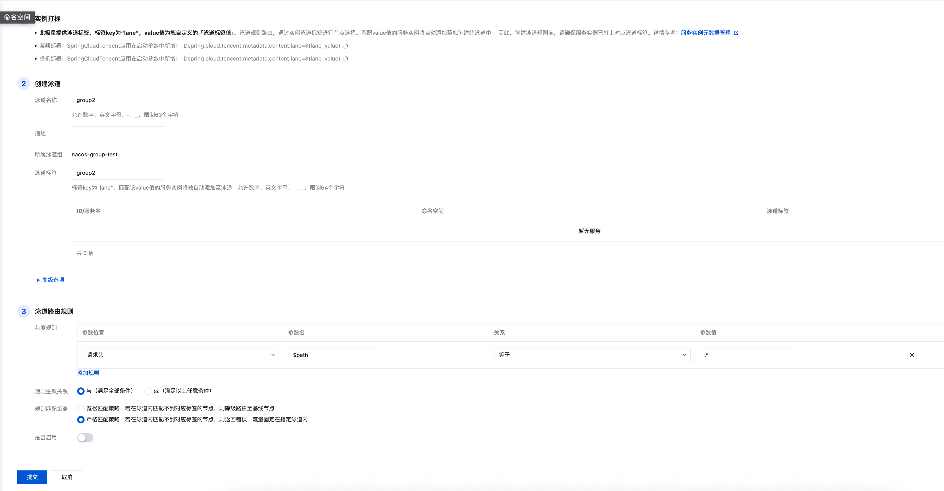 宽松匹配策略:若在泳道内匹配不到对应标签的节点,则降级路由至基线节点。