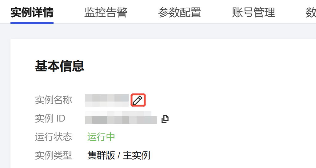 2. 进入实例详情页签,在基本信息区域,单击实例名称后的