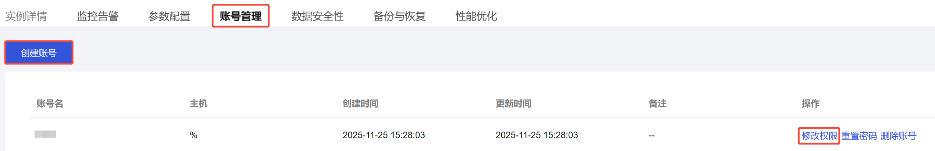 3.3 在账号所在行,单击操作列修改权限,赋予