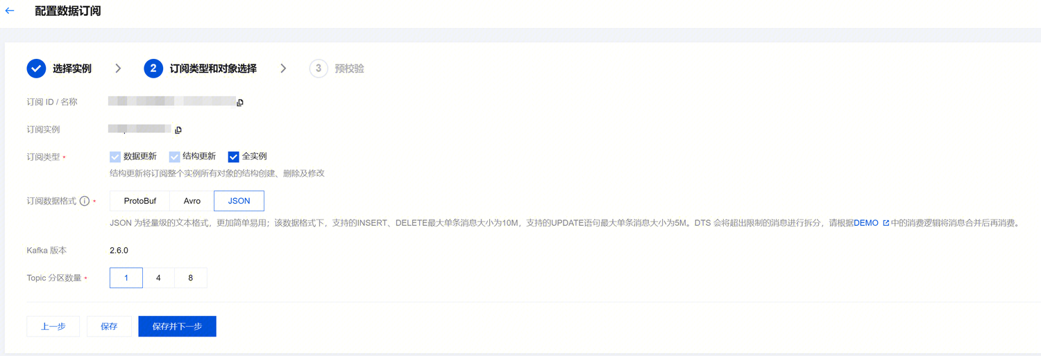 5. 在订阅类型和对象选择页面,选择订阅类型,单击保存并下一步。