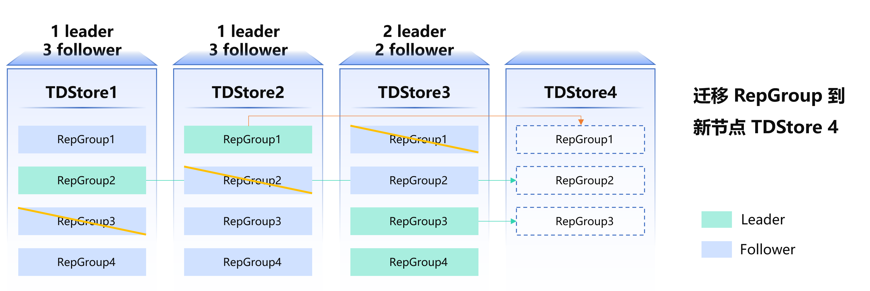 数据分散:通过迁移 Replication Group,实现数据在不同 TDStore 节点间的均衡分布
