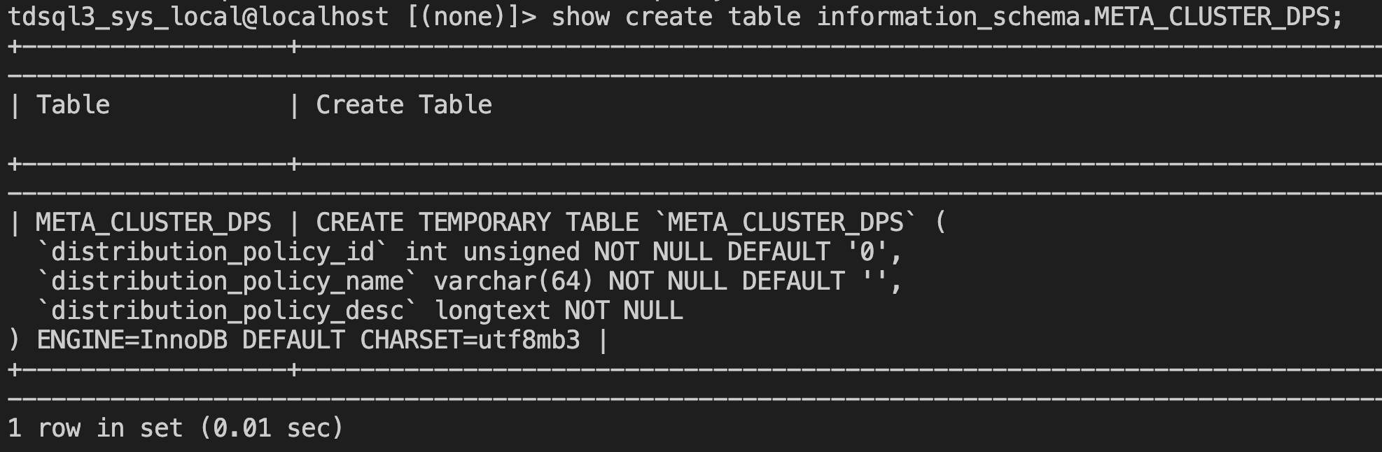 information_schema 中新增了视图 META_CLUSTER_DPS,表结构如下:
