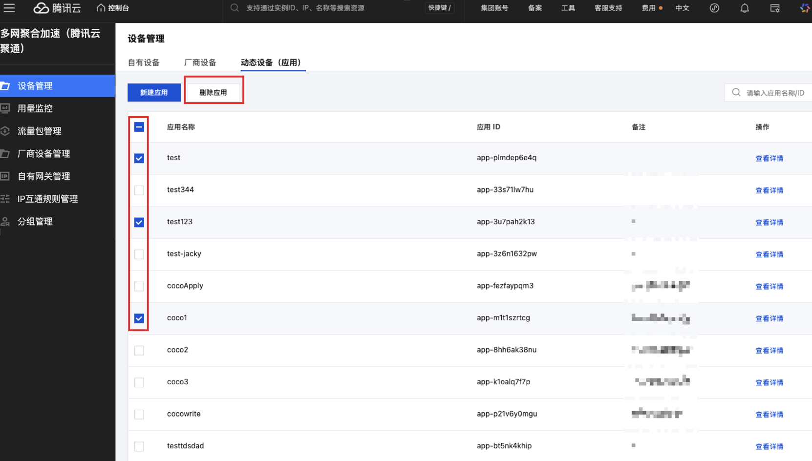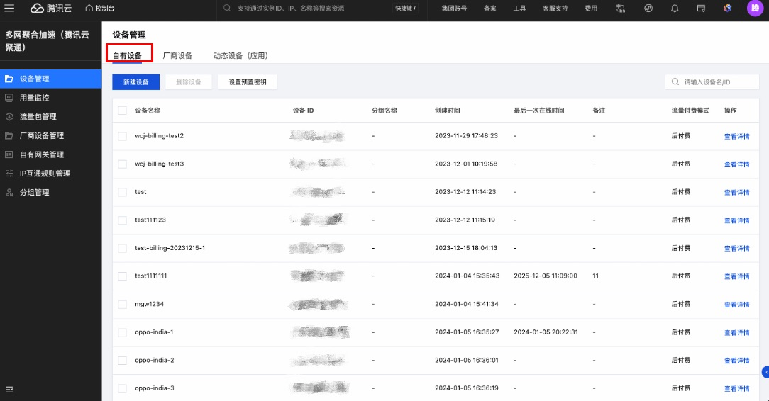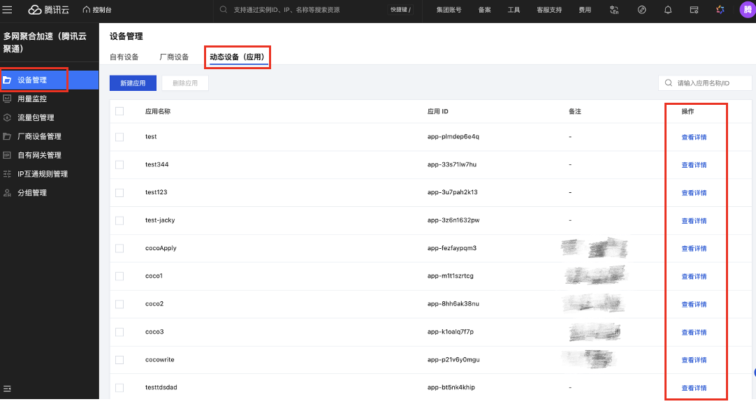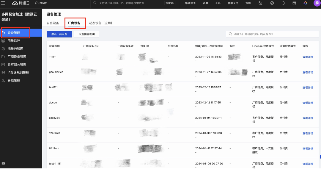 本文为您介绍在多网聚合加速(腾讯云聚通)控制台进行设备全生命周期管理的操作流程,包括自有设备/厂商设备/动态应用的创建、授权、监控及流量管理等操作。