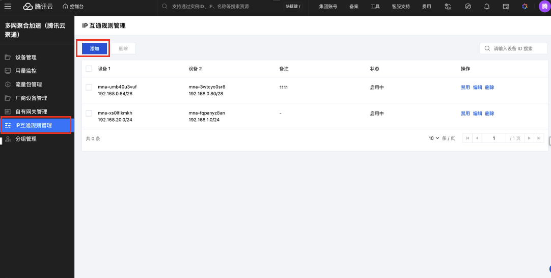 IP 互通规则管理