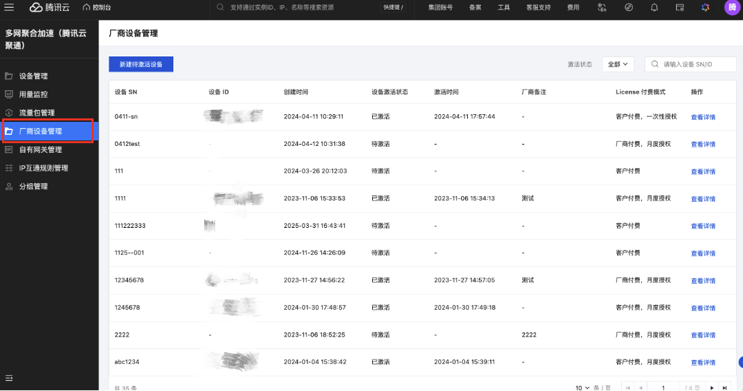 在左侧菜单栏中,单击设备管理,选择厂商设备列表,进入厂商设备管理页面。