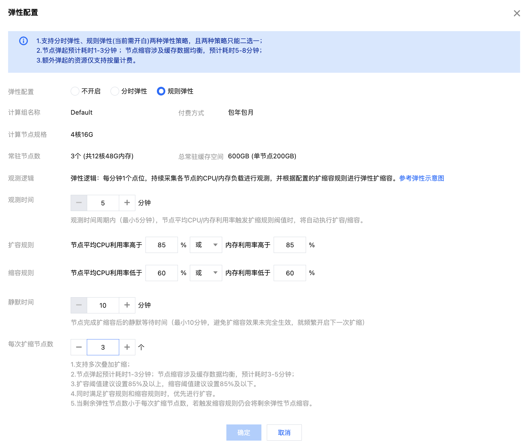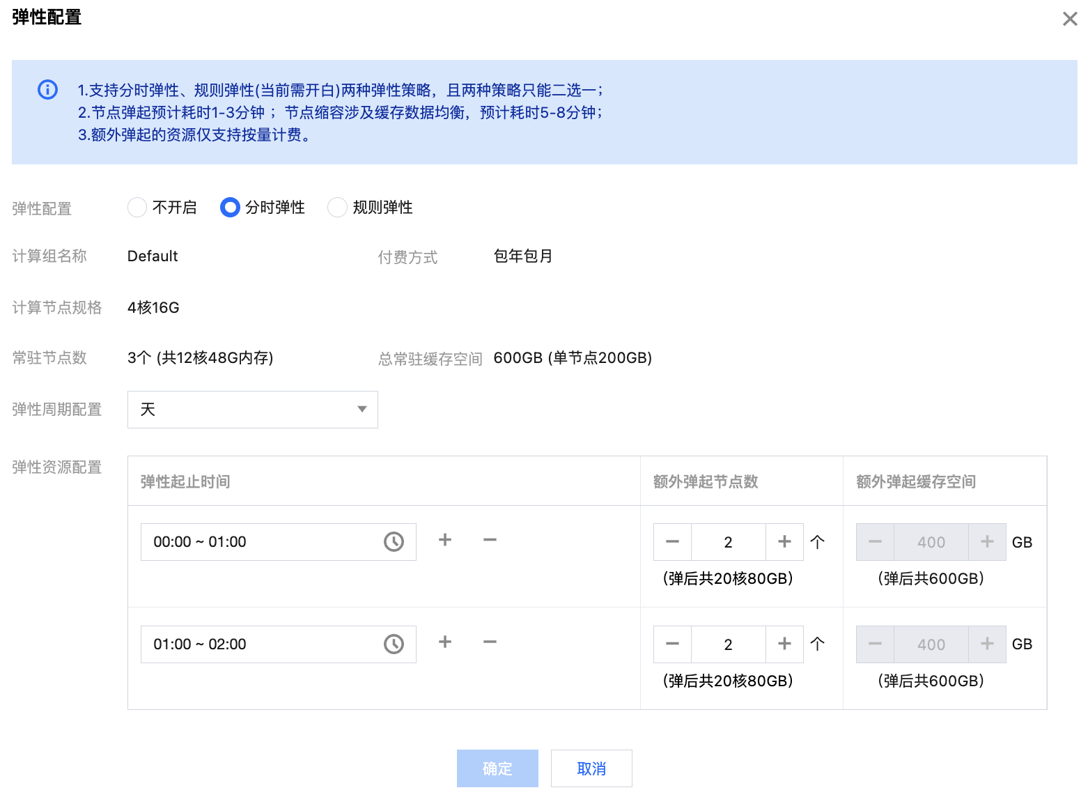 开启弹性配置可支持分时弹性和规则弹性两种策略。
