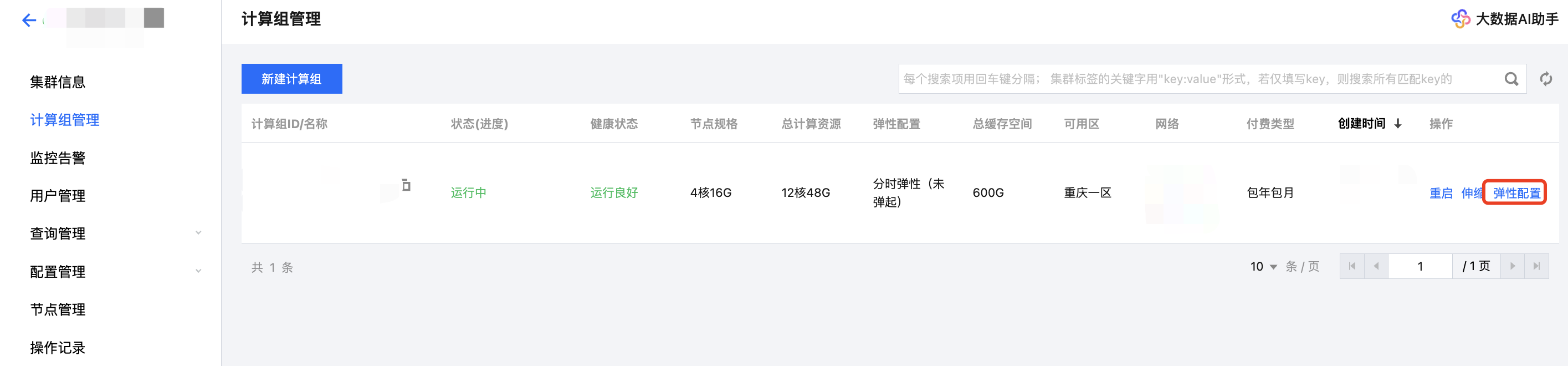 2. 单击计算组列表中的 操作 > 弹性配置,即可在。弹窗中配置弹性策略
