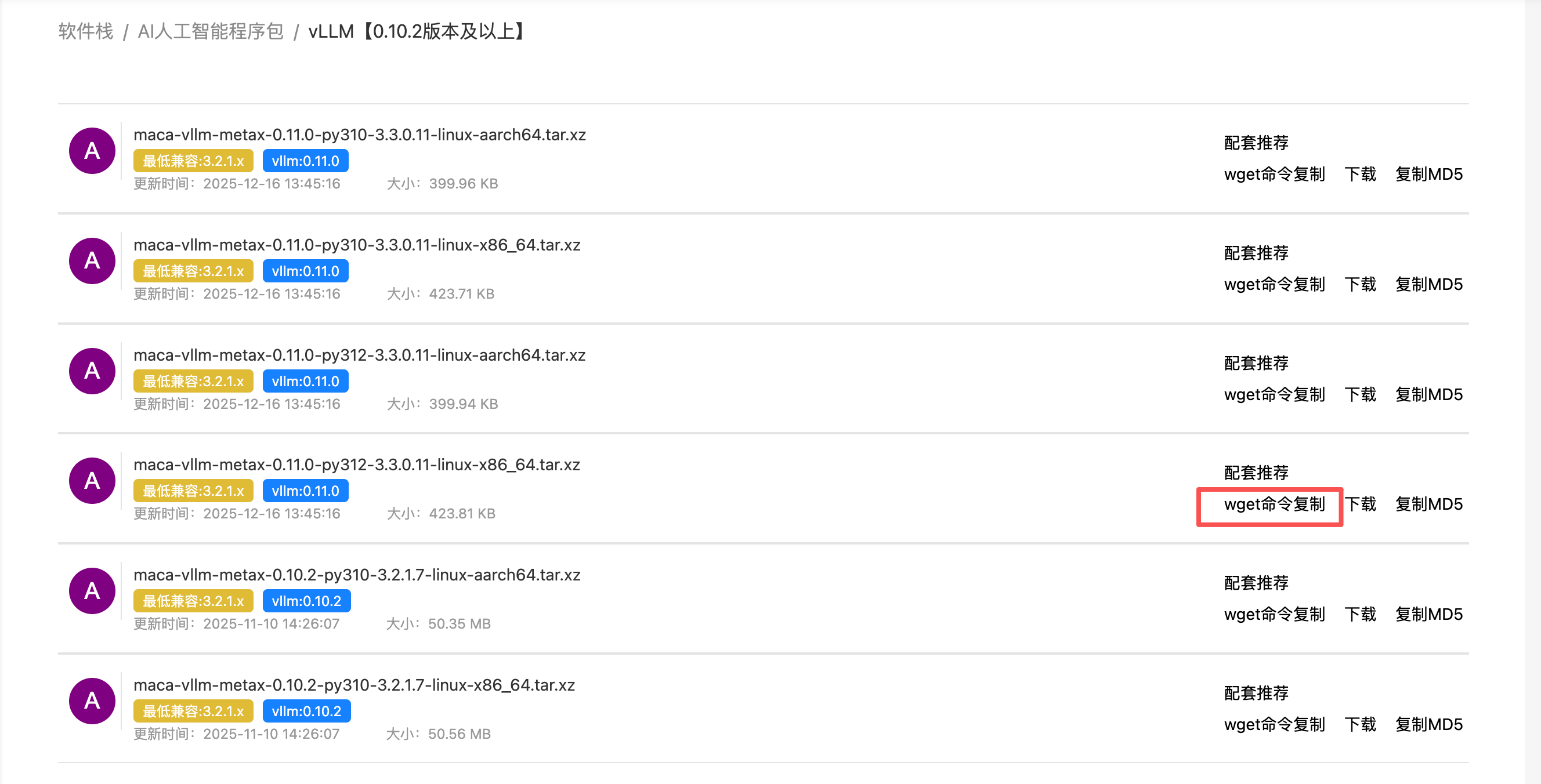 TencentOS 4 仅支持 Python 3.11 及 3.12 版本,因此在沐曦官网拉取 AI 框架时,请使用