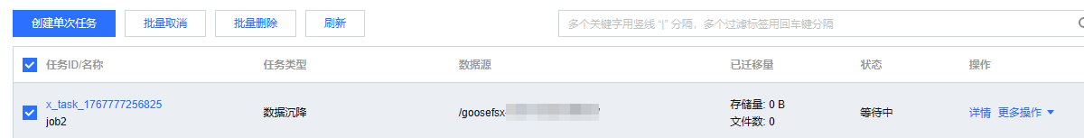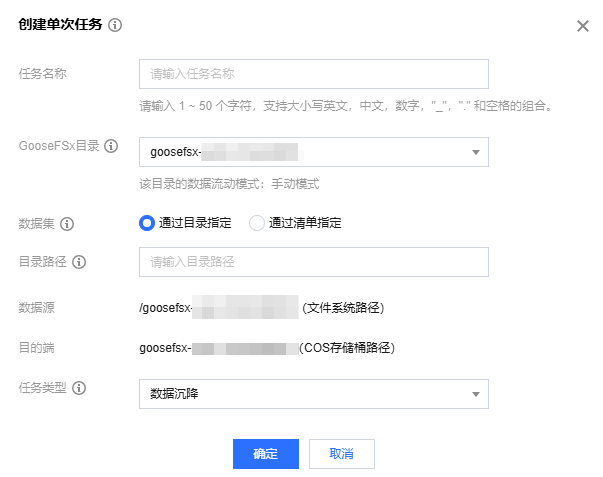 创建数据沉降单次任务,是在 GooseFSx 目录与 COS 存储桶之间执行一次数据沉降。