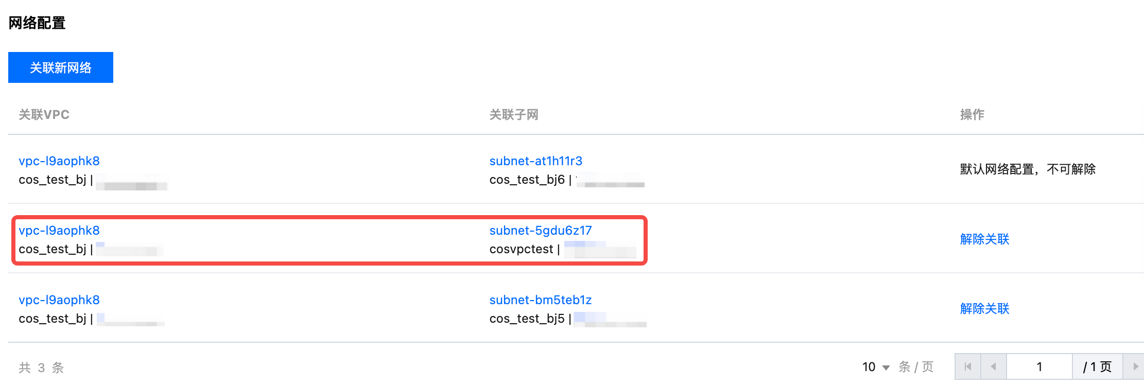 在网络配置列表中,选择需要解除关联的子网,单击操作中的解除关联,跳转到解除关联页面后单击确定即可解除关联子网。