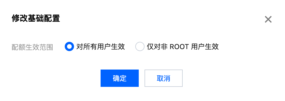 示例 :超级目录 A 容量配额是10TiB,非 ROOT 用户在目录 A 写入2TiB,ROOT 用户在目录 A 写入9TiB,配额生效范围是仅对非 ROOT 用户生效;如果将配额生效范围修改为对所有用户生效,因为所有用户已写入11TiB数据、已超出配额(配额是10TiB),所有用户将限制往目录 A 写入数据。
