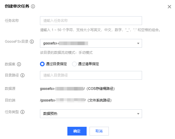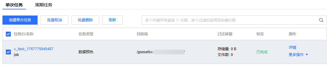 目标路径:指定需要预热的目录路径,比如,该 GooseFSx 目录、或该 GooseFSx 目录下的某个子目录。