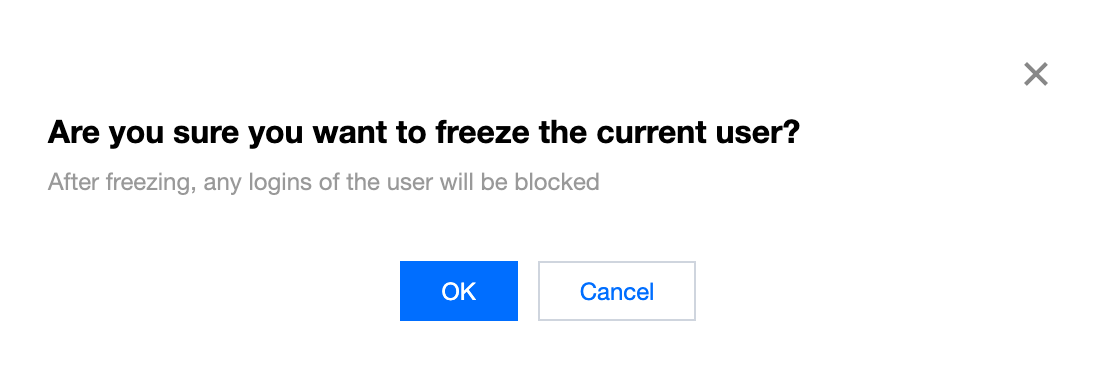 3. In the "Confirm Freeze" pop-up window, click OK. The user will then be frozen and unable to log into the console.