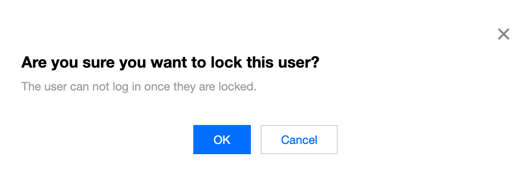 3. In the "Confirm Lock" pop-up window, click OK. The user will then be locked and unable to log in to the console.