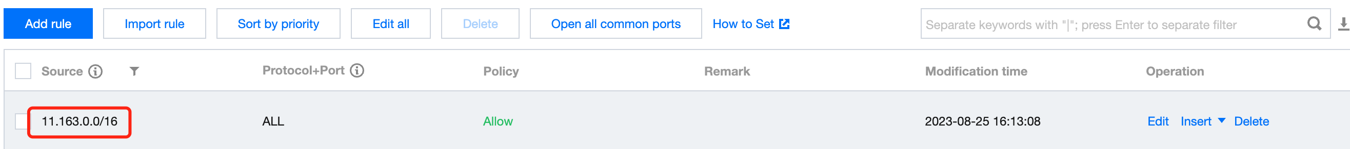 Please ensure that the security group associated with the Cloud Virtual Machine in the service provider's VPC2 has allowed the 11.163.0.0/16 address range, as shown in the following diagram.