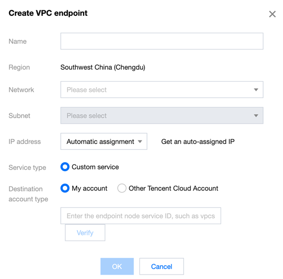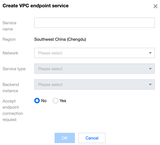 4. After completing the parameter settings, click OK to finish creating the Endpoint Service.