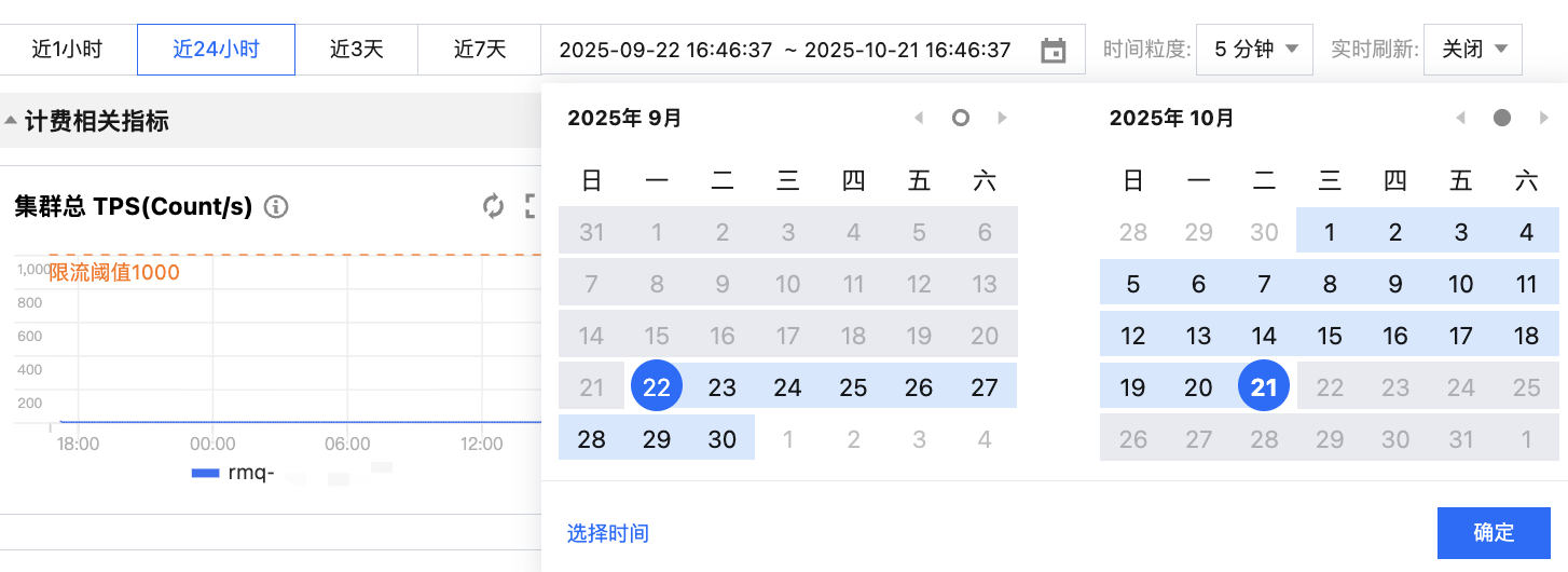 您可通过以下功能灵活控制监控数据展示:自由选择时间区间、调整时间粒度和刷新频率。