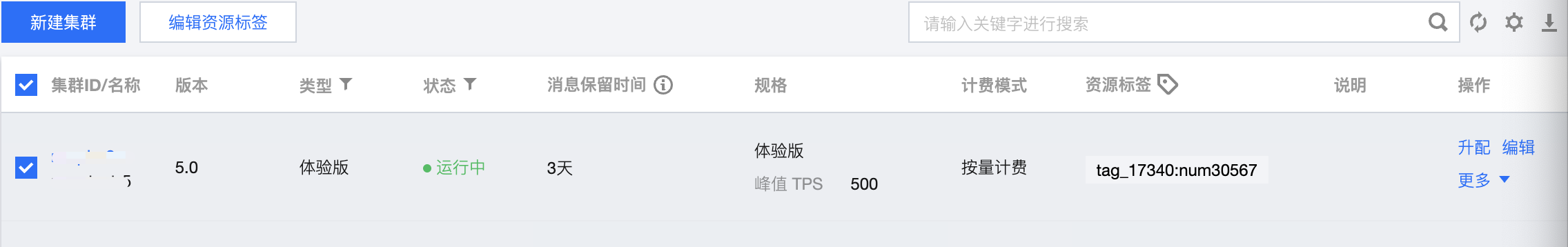 集群:勾选目标资源,单击左上角的编辑资源标签,为集群绑定好资源标签。