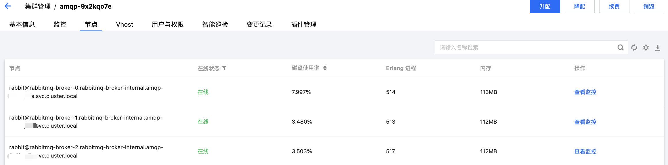 4. 在节点列表页,单击操作列的查看监控,可以查看对应的节点的详细监控信息。详细指标介绍请参考监控指标说明。