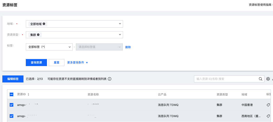 4. 在结果中勾选需要的 资源,单击编辑标签,即可批量进行标签的绑定或解绑操作。