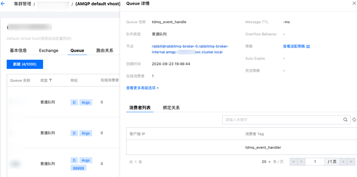 spring:rabbitmq:# host地址可在控制台中获取 或 使用Rabbitmq服务地址host: 1.14.235.155port: 5672# 要使用的角色名称 可在角色管理控制台获取username: admin# 角色密钥password: eyJrZXlJZ....# Vhost全称,可在集群控制台Vhost tab页获取virtual-host: test_vhost