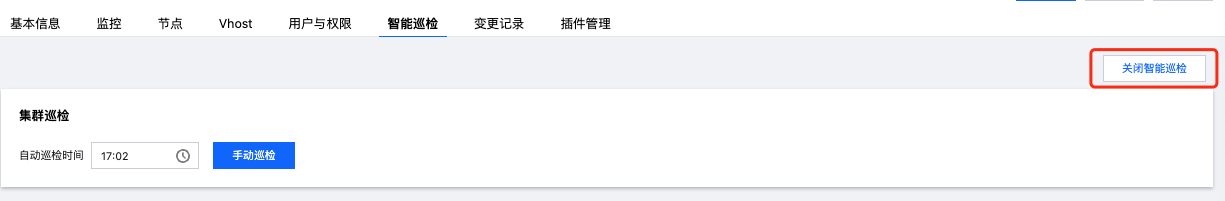 3. 在集群详情页顶部,选择智能巡检页签,进入智能巡检页面,单击关闭智能巡检。