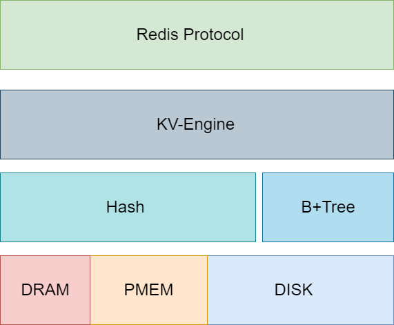 极速版专为对性能和持久化有更高要求的场景而设计,采用为 KV 场景深度定制的 Hash 引擎(zset 结合 B+Tree),采用内存 (DRAM) + 持久内存 (PMEM) + NVMe SSD 三级分层存储架构,DRAM 提供数据索引,PMEM 提供热数据缓存和日志持久化,DISK 提供大容量存储空间,数据自动分级存储,有效实现了性能和成本的平衡。