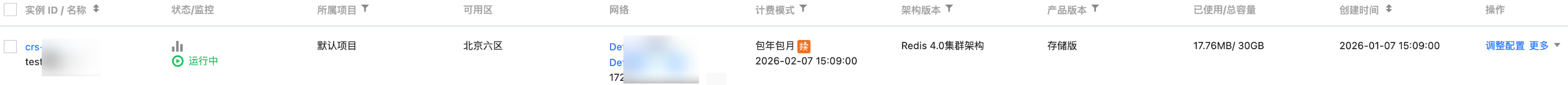 | 到期时间 | 包年包月计费模式,显示实例到期时间。 |