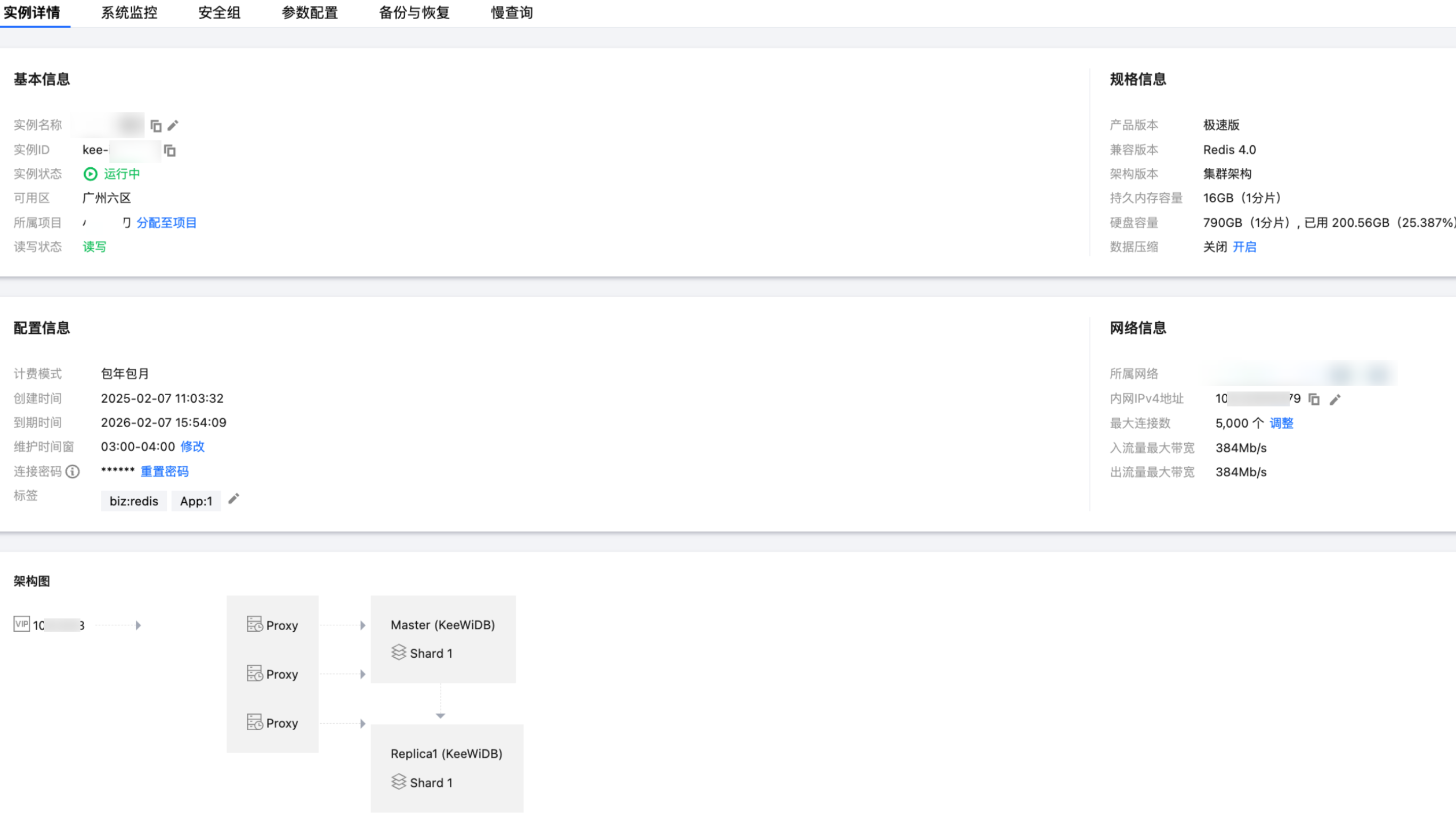 | 实例状态 | 实例当前的运行状态,正常为:运行中。 |