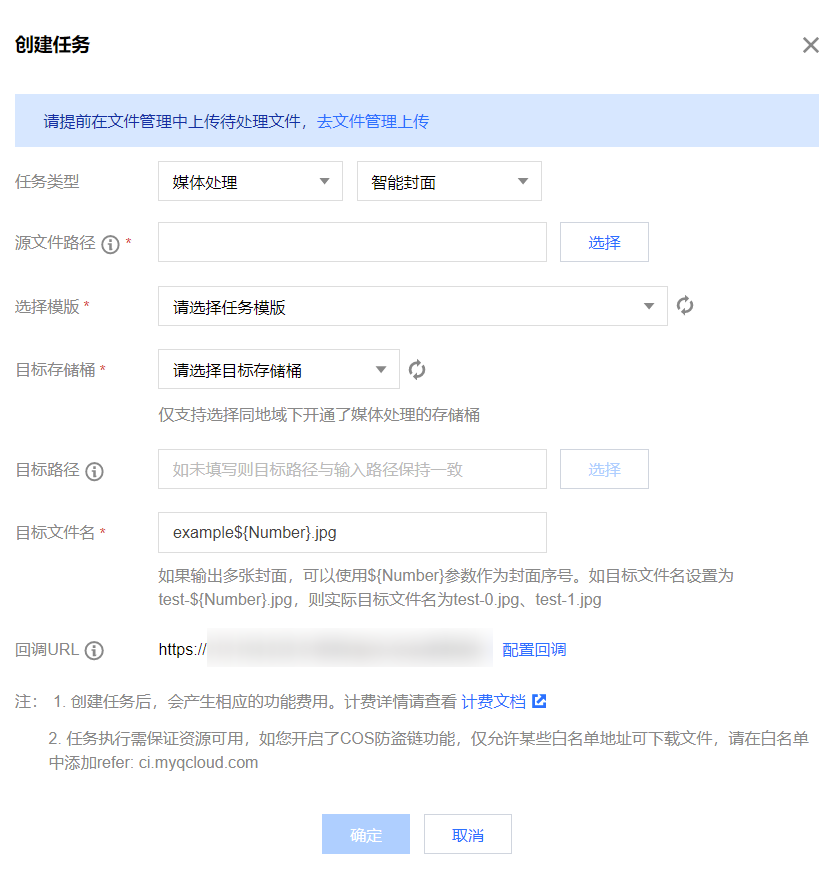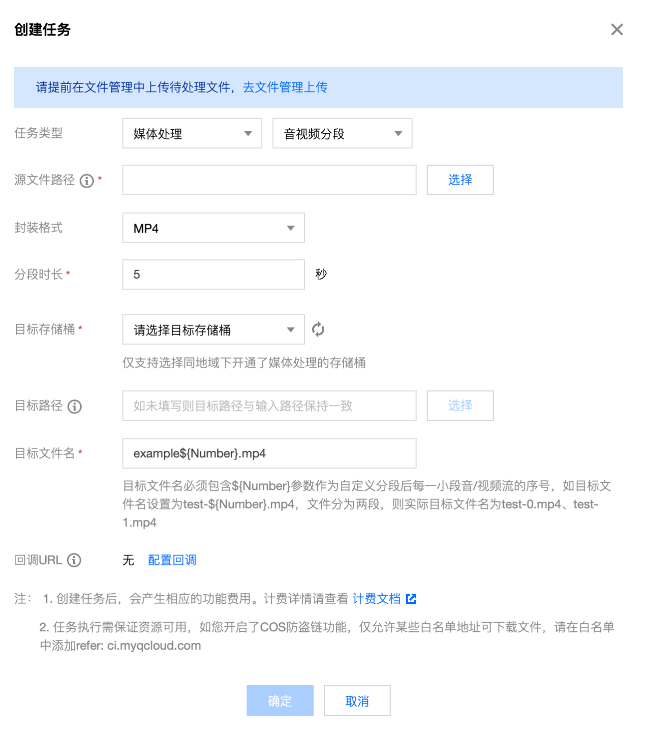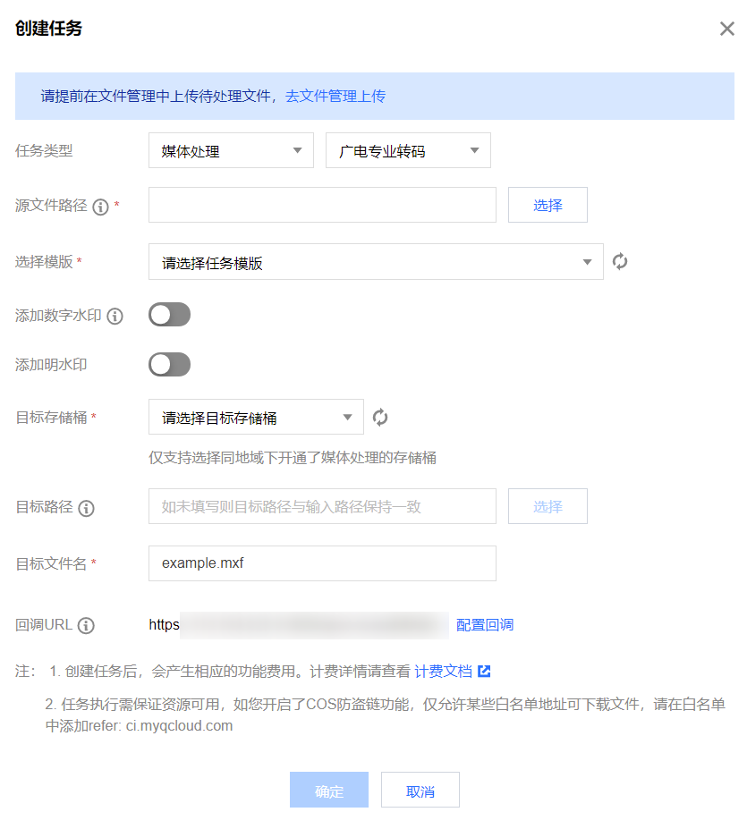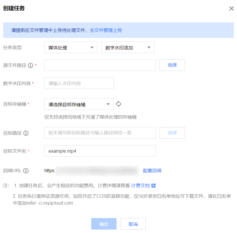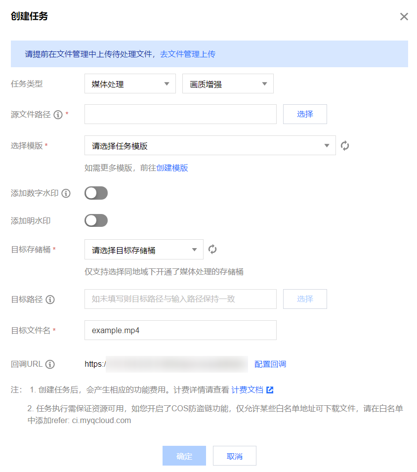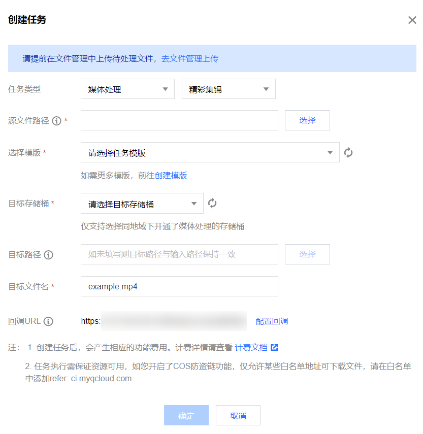 目标信息:媒体地址、目标文件所在存储桶、存储桶地域、目标文件的存储路径。