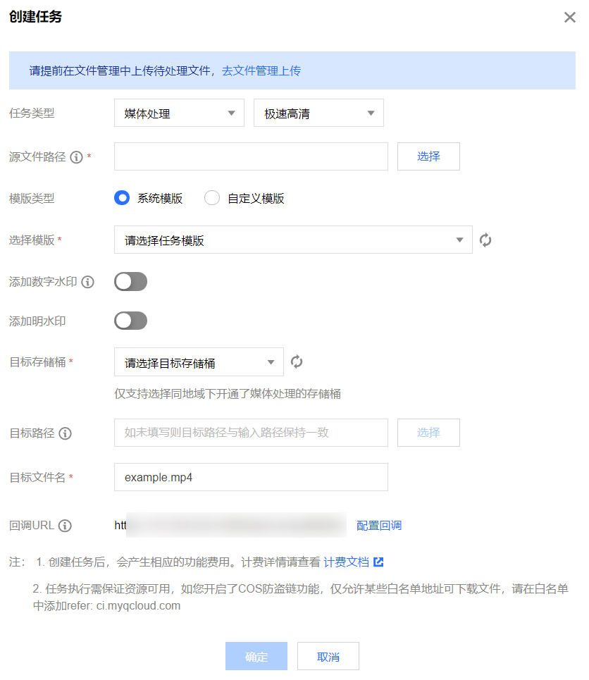 创建任务后,会产生相应的功能费用。计费详情请参见 媒体处理计费文档。