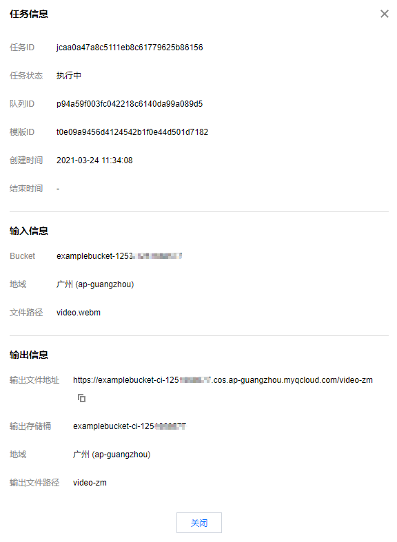 输入信息:被处理视频所在的存储桶、存储桶地域、被处理文件的存储路径。