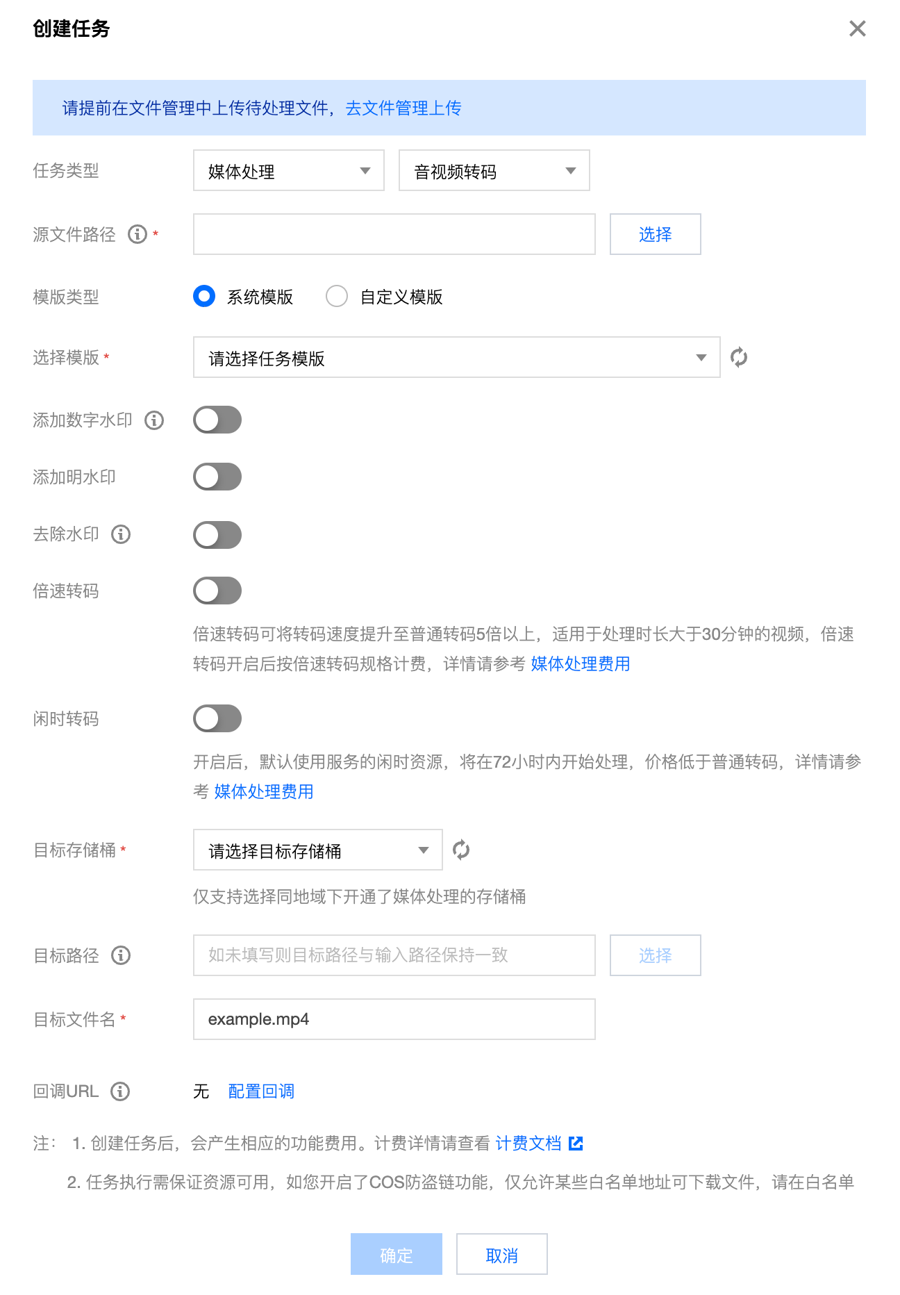 闲时转码:开启后使用闲时资源进行处理,大幅降低转码成本。