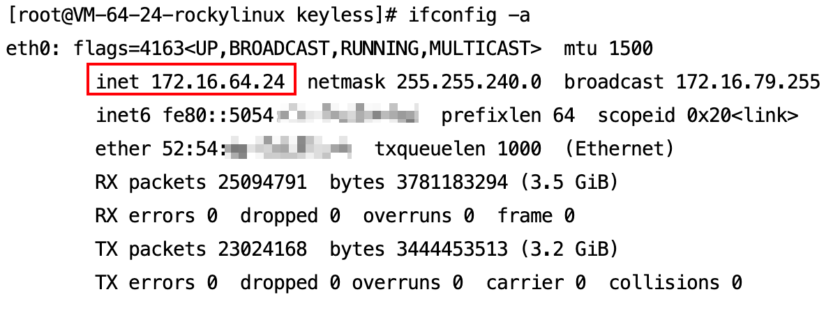 目录下,同时您还需要配置 EdgeOne 边缘节点向 Keyless server 发起访问时所携带的客户端证书,该证书配置请 联系我们 进行配置。6. 运行以下命令,获取本机 IP 地址,例如: