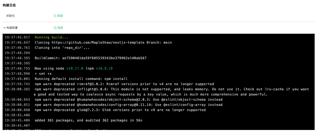 在部署列表中,您可以浏览您曾经创建过的任何部署,并通过唯一的 URL 预览它,也可以查看每个部署的构建日志及产物。