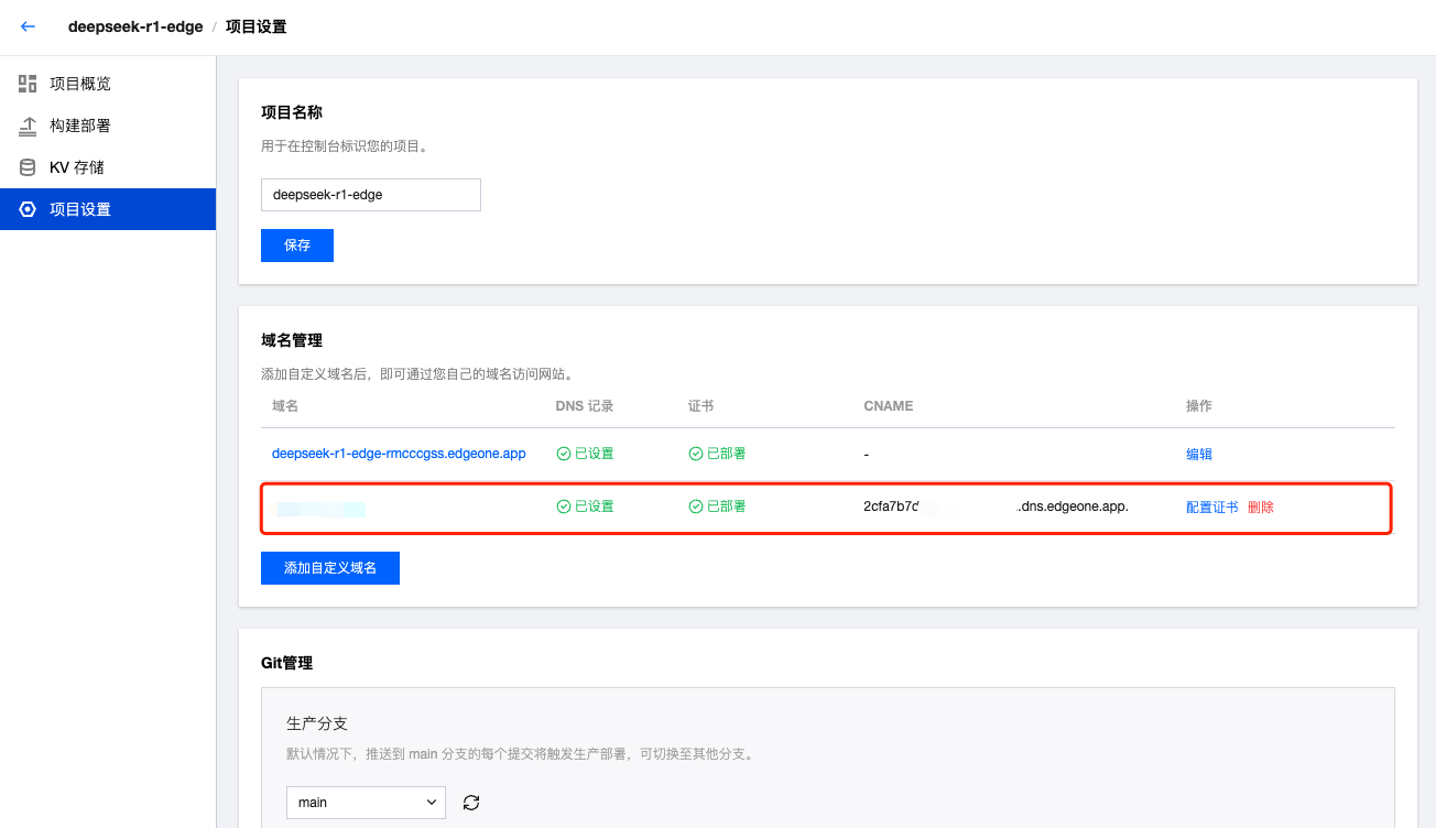 由于项目域名有时效限制,我们建议您添加自定义域名(例如 www.example.com),即可将域名作为可持久调用的 API 地址。