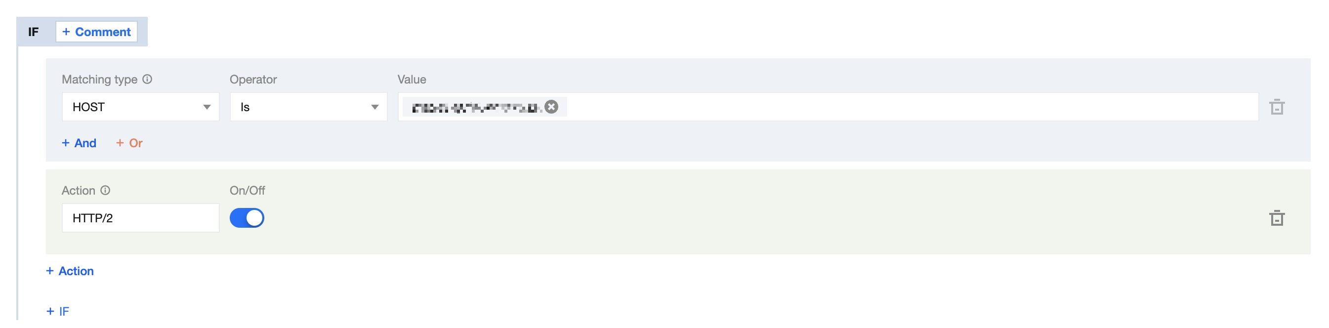 2. For configuring access requests, please refer to this document. If you need to configure HTTP/2 origin-pull, please see HTTP/2 Origin-pull.