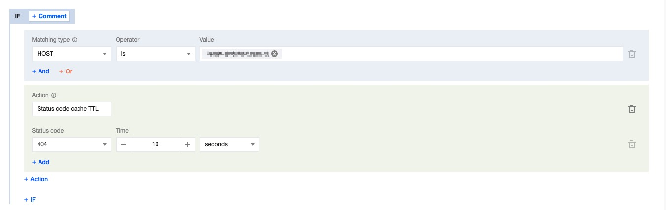 If you need to configure different status code cache TTLs for different domain names, paths, or file extensions, for example, configuring the status code cache TTL for the