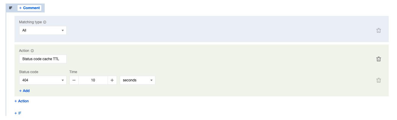 By default, EdgeOne caches the 404 status code for 10 seconds.