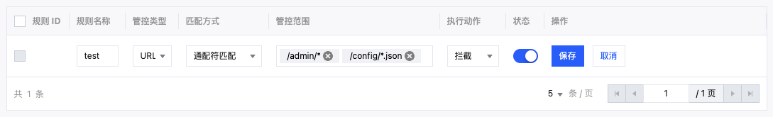 URL 管控 | 根据请求的 URL 管控访问请求,支持以通配符匹配 |