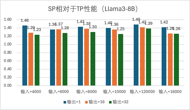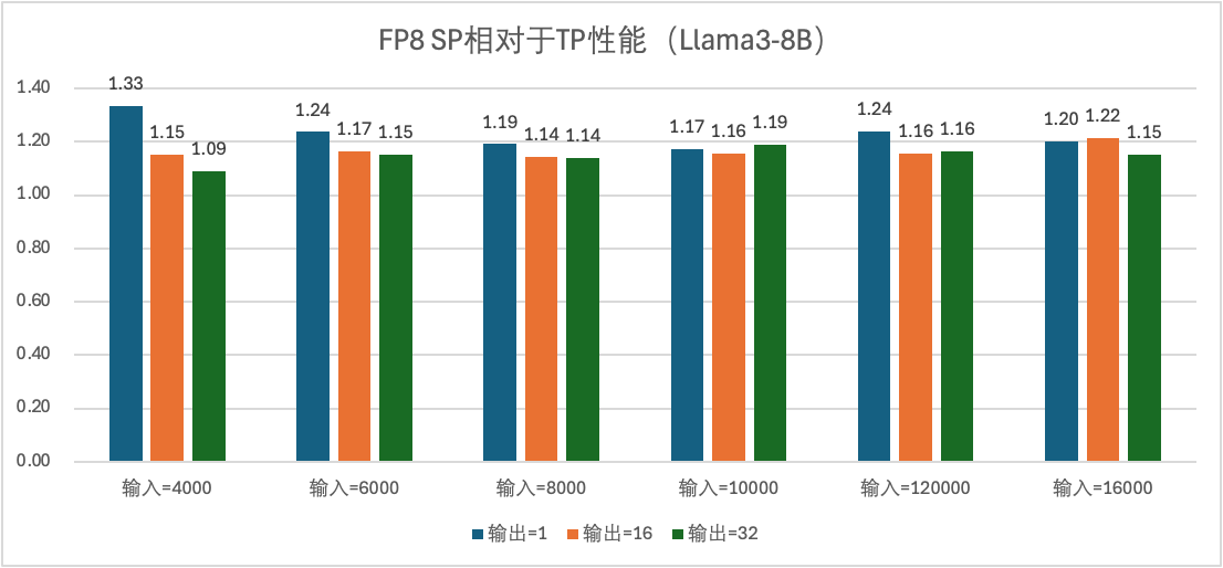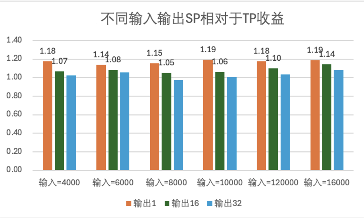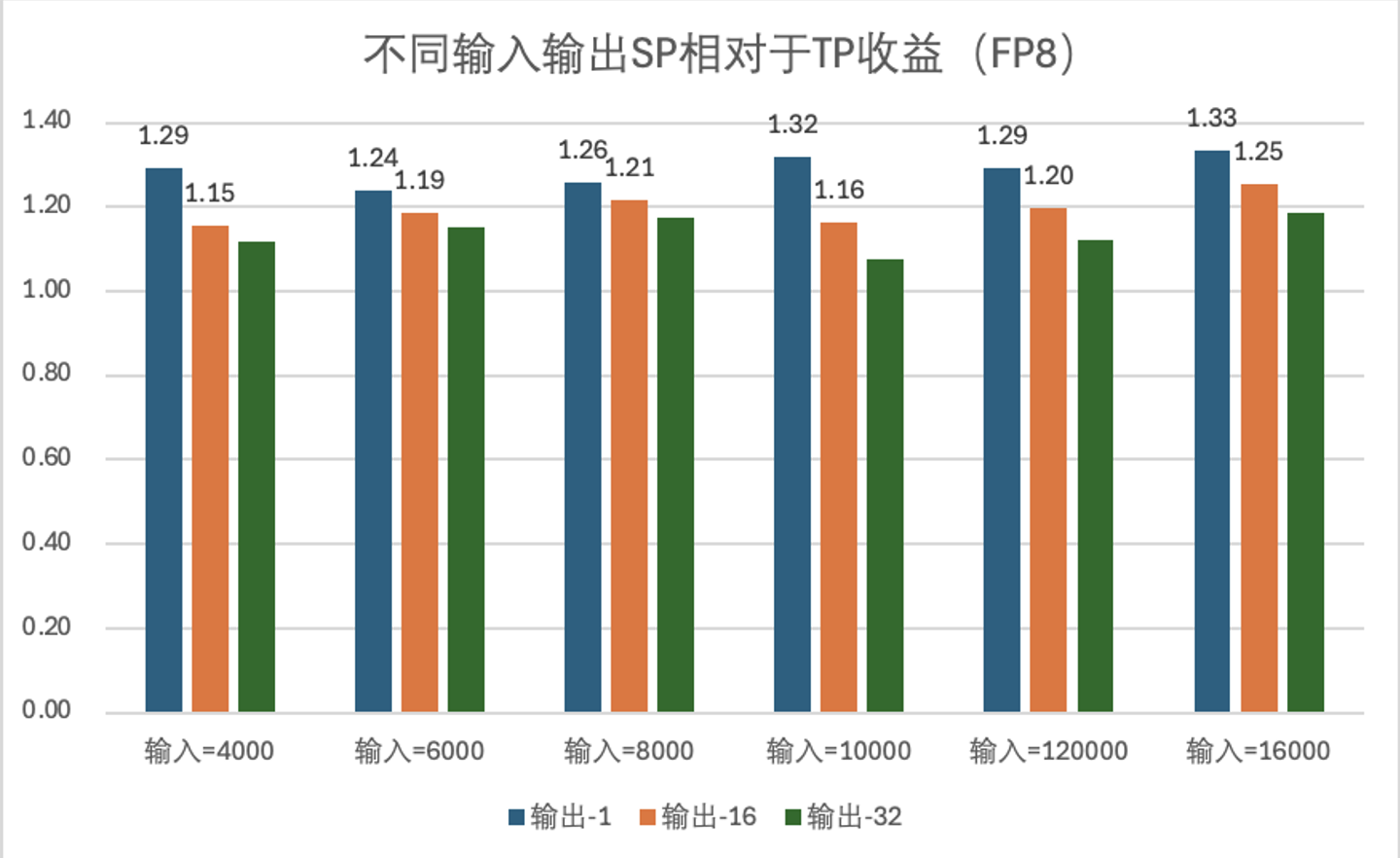 在 PNV5b 上 FP8:SP = 2的场景相对于 TP = 2场景,性能有15%到25%的提升。