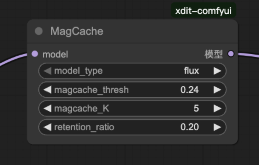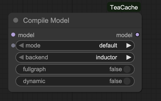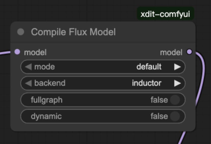 专为 Flux 模型定制的 Compile Node,第一次执行会对执行流程进行编译,因此会增加第一次的执行时间,但是第二次之后的执行时间会明显下降(当存在 offload 时可能会编译失败,因此存在 offload 时慎用)。
