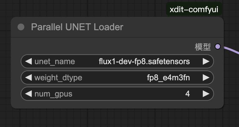 UNETLoader 的并行版本,通过在启动后设置 num_gpus 可以方便的执行多卡并行(一次 ComfyUI 启动只能支持一种配置,切换卡数需要重启 ComfyUI)。