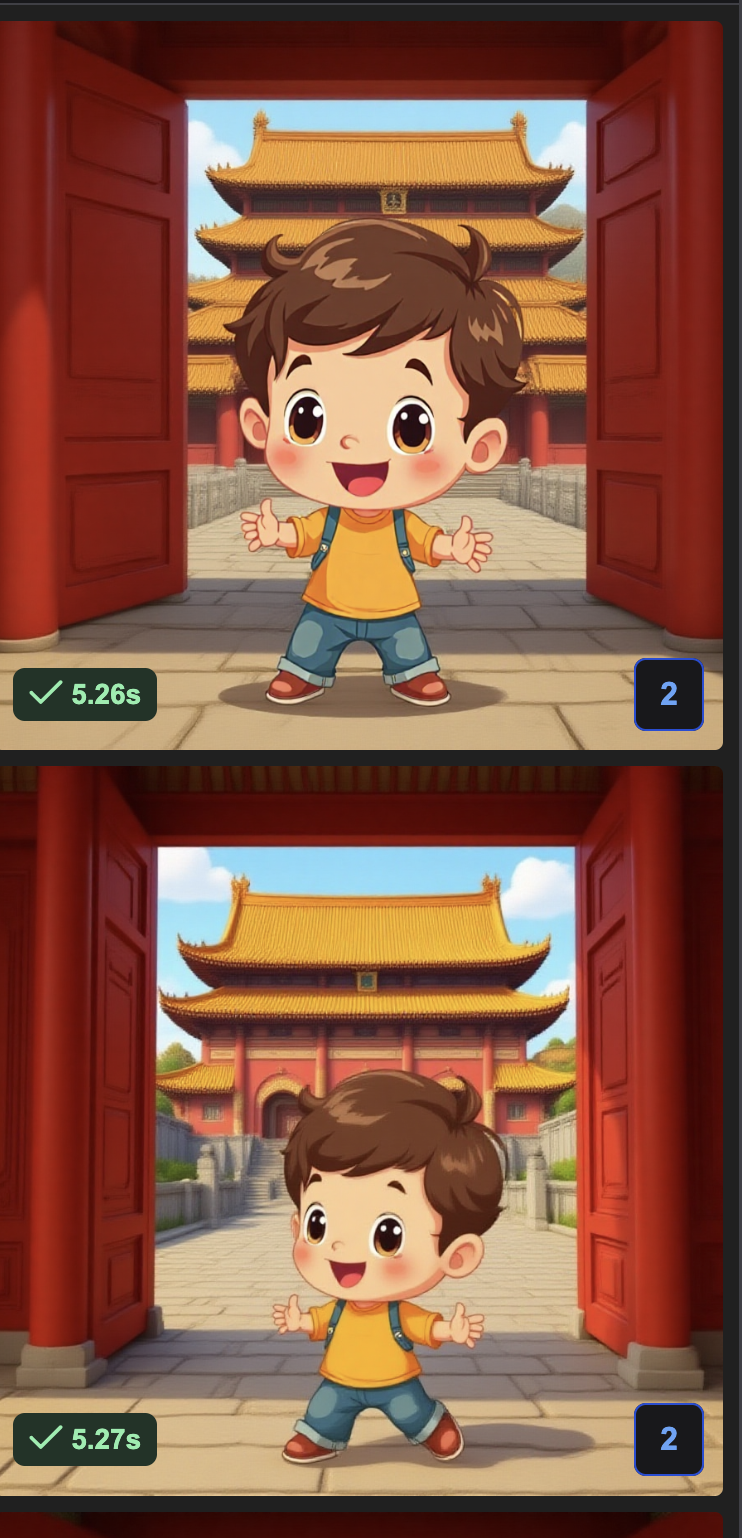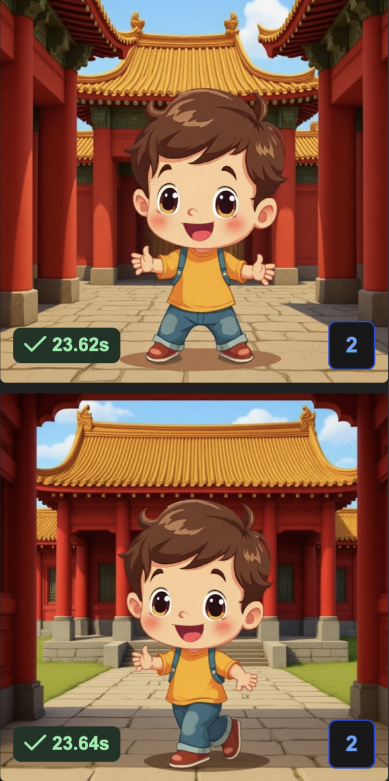 整体生图时延平均提速4.5倍,从23.6s降低到5.2s。运行结果如下: