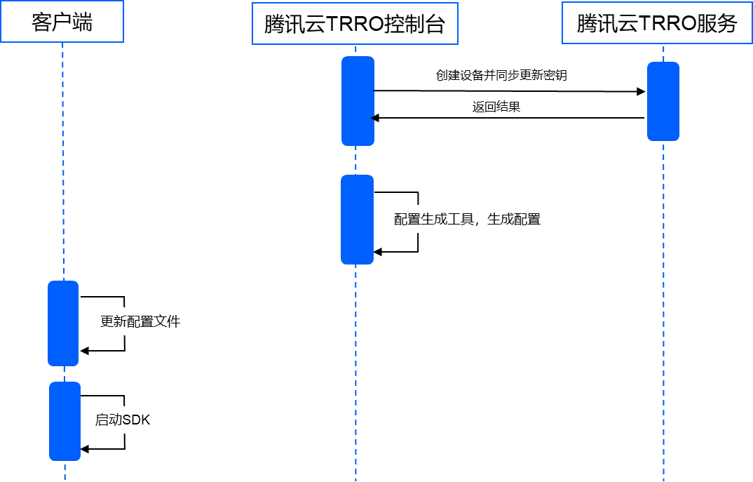 为保护密钥信息安全,防止被窃取,在设备端没有安全存储的情况下,建议您不要基于本地配置文件导入设备密码。可基于 TRRO 服务提供的服务端 API 文档开发对应的用户后台服务对设备密码进行管理,设备启动时通过安全会话连接从用户后台服务中实时获取密码,进行初始化启动。