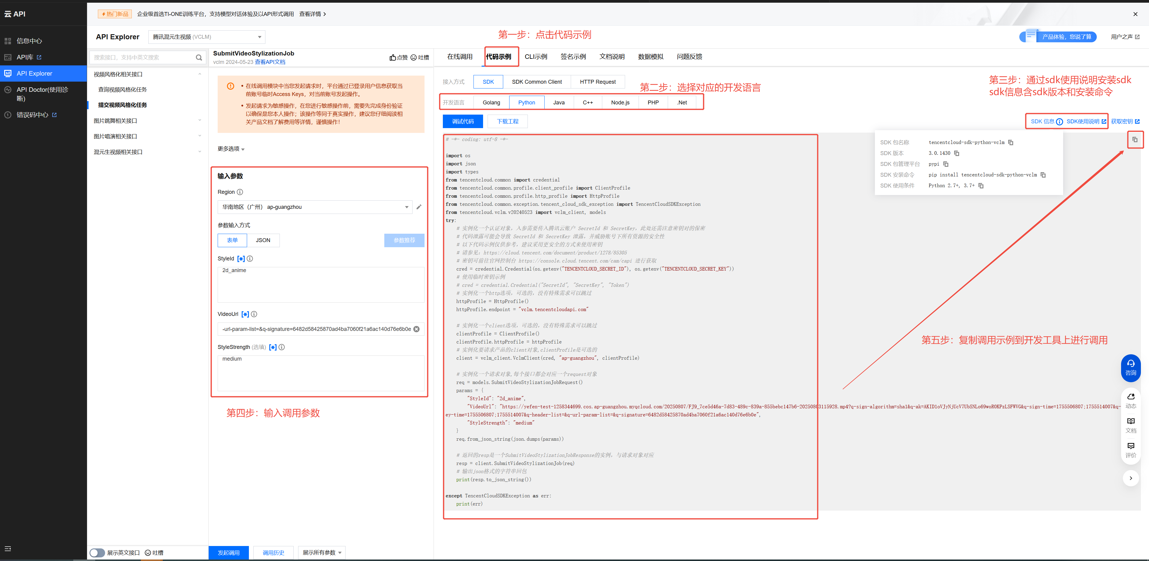 本文将为您介绍如何使用 API 3.0 Explorer 在线调试腾讯混元生视频相关接口。