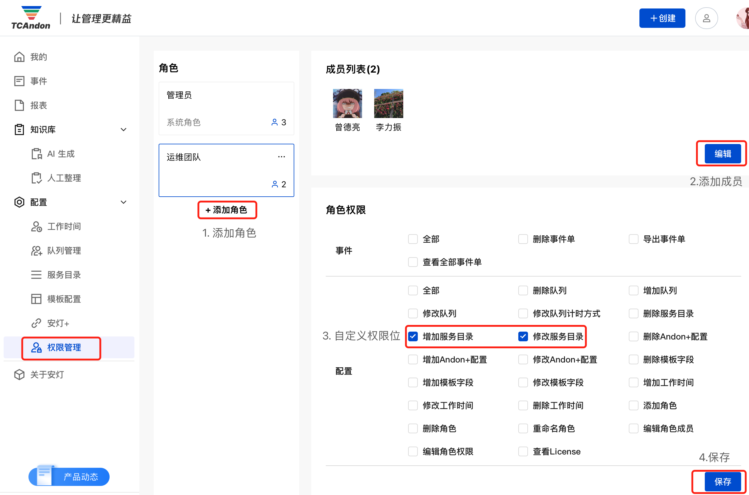 管理员默认权限位,仅可添加人员,不可修改权限位;其他可按照业务需求按下图进行操作。