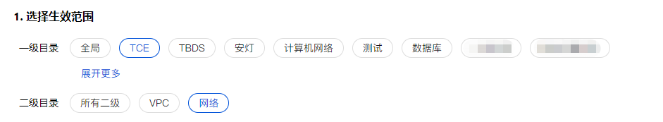 1. 选择服务目录,通过选择目录确定自定义字段的生效期范围。