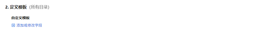 2. 自定义表单字段,对被选择的目录进行字段配置,单击添加或修改字段展开字段配置对弹窗。
