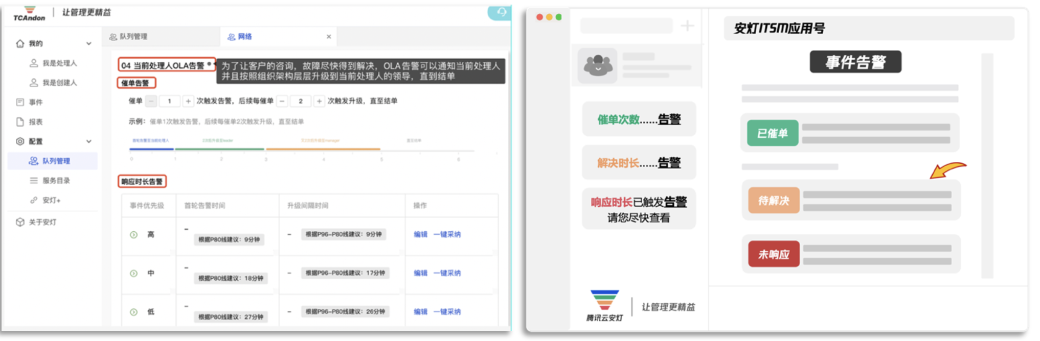 配置完成后,安灯会因某些条件触发告警并随时间逐级上升。